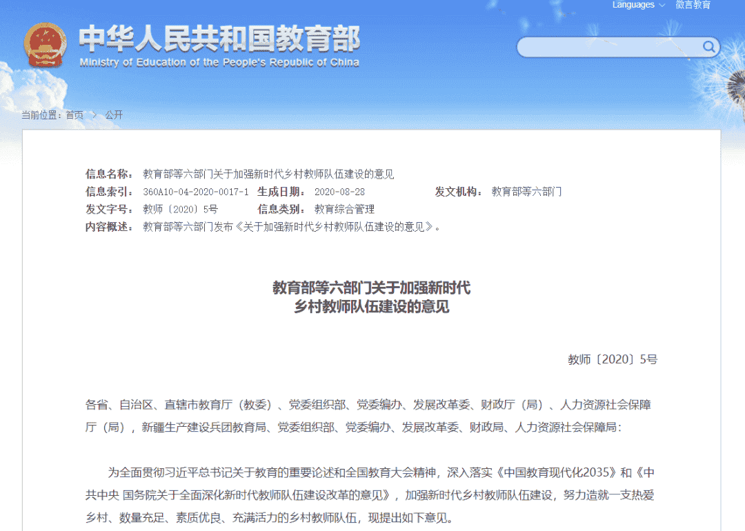 教育部等六部门关于加强新时代乡村教师队伍建设的意见