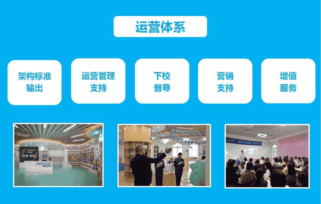 全优贝贝依托于全优系18年超过90家早幼教校区的成功运营实战和团队管理经验,通过标准化的模式帮扶众多加盟校区快速抢占市场并形成可持续发展策略。