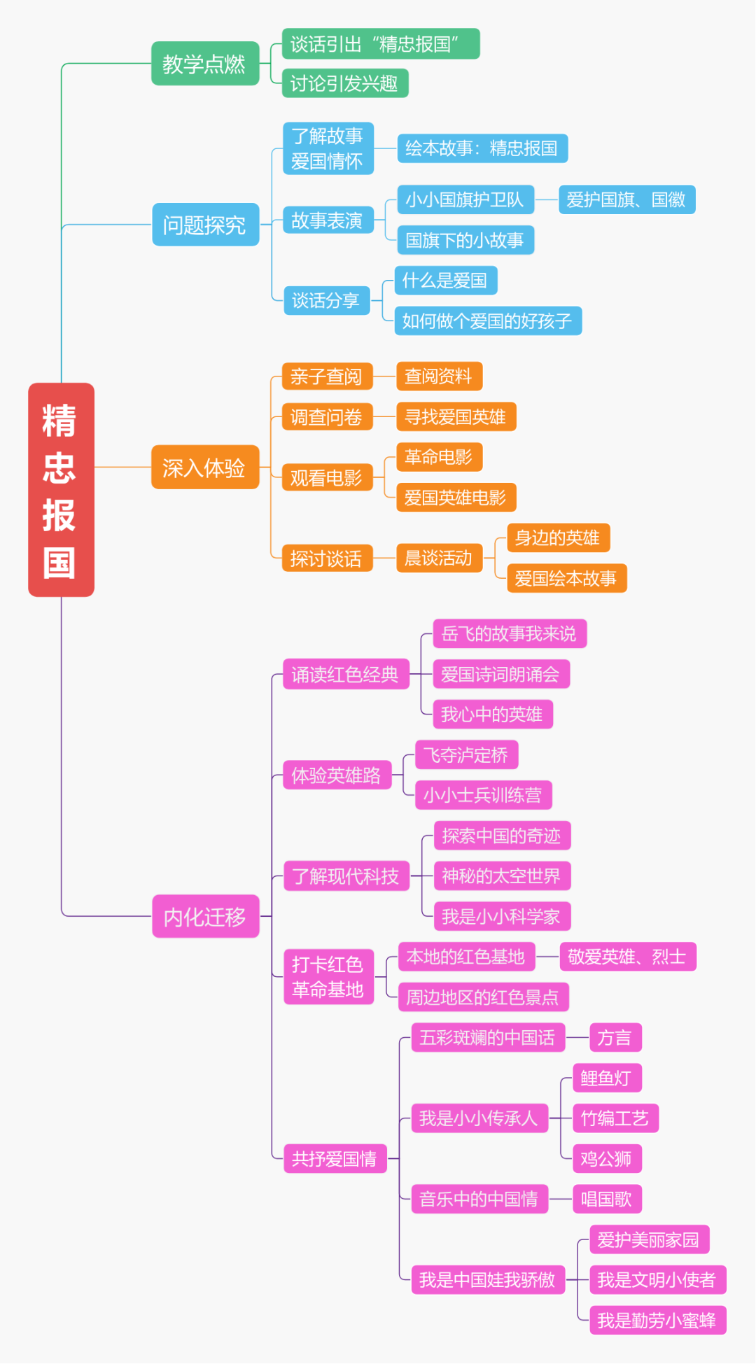 通过设计“怎么样?什么是?如何做?”等问题链,引导幼儿层层深入思考。例如在大班的爱国主题教育课程中,教师先提问 “听了岳飞的故事,你觉得他是怎样的人?”,引发幼儿对 “爱国人物” 的认知;再追问 “如果是你,你会怎样爱祖国?”,引导幼儿将认知与自身行为关联。